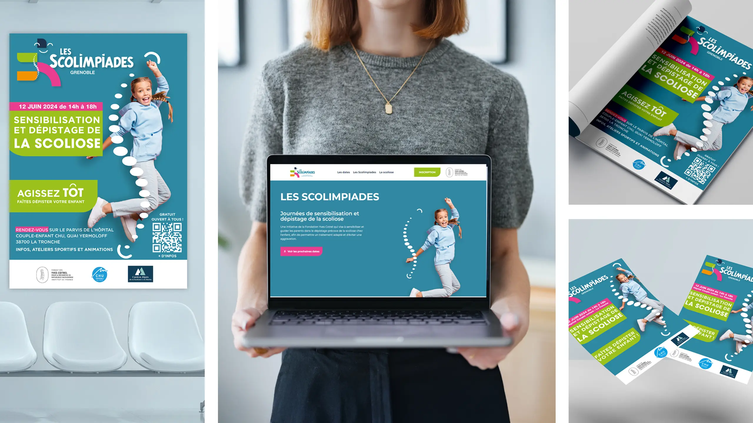 La Fondation Yves Cotrel – Institut de France souhaitait lancer une campagne nationale de sensibilisation et de dépistage de la scoliose chez l’enfant, à travers un événement fédérateur et accessible : les Scolimpiades. Pour cette toute première édition à Grenoble, l’objectif était double : informer les familles sur l’importance d’un dépistage précoce et mobiliser les acteurs locaux de la santé et du sport autour d’une cause commune.